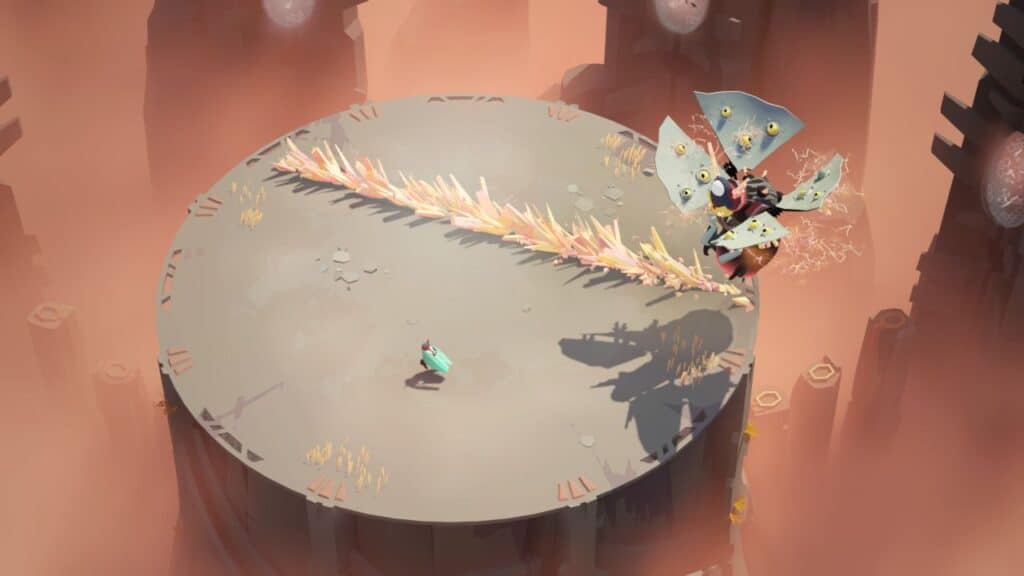 Żeby nie było jednak zbyt łatwo i spokojnie, na końcu każdego etapu przyjdzie nam stoczyć walkę ze stworem, który jest obrońcą określonego biomu. Walki w Cocoon nie należą do najtrudniejszych, lecz są miłą odmianą od przenoszenia kul, zmieniania światów i próbowania różnych sposobów na przejście dalej. Każdy z bossów ma swój unikalny zestaw ruchów i wobec każdego z nich został przyporządkowany inny sposób na wykonanie nokautu przez naszego owada. Najczęściej musimy stawić czoła trzem różnym atakom przeciwnika, aby finalnie go unieszkodliwić. Jeżeli powinie się nam noga, zostaniemy wycofani do momentu wejścia na arenę, a potyczkę trzeba będzie odbywać na nowo od samego początku.