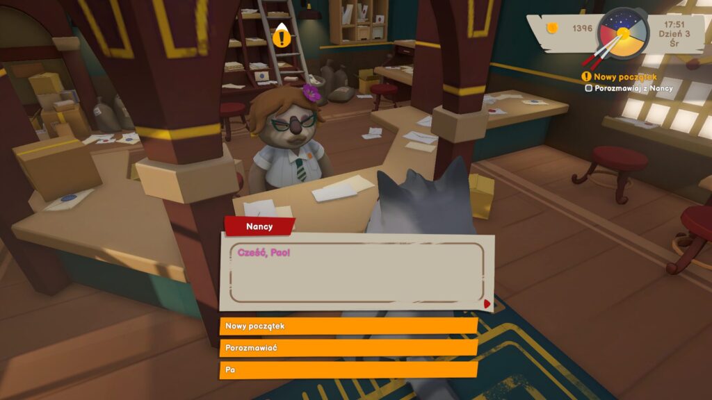Od samego początku widać zatem, że nie jest to po prostu gra o gotowaniu. Świat przedstawiony w Pao Pao jest nieco bardziej rozbudowany i choć trzonem jest kuchnia, to interakcje z sąsiadami są równie ważne. W grze mamy nawet dostęp do swojej skrzynki pocztowej, w której będą lądować listy, często rozpoczynające nowe zadania. Wykonywanie dodatkowych wyzwań może odblokować nowe receptury, dostęp do unikatowych składników lub po prostu kolejne etapy rozgrywki. Czasem przyjdzie nam coś komuś dostarczyć, kogoś o czymś poinformować, poratować groszem lub na przykład złowić kilka sztuk suma. Samo miasteczko reaguje na naszą obecność, choć w sposób bardzo minimalistyczny. Przechodnie nie widzą naszej postaci, a samochody jedynie zatrzymują się, chcąc uniknąć kolizji (a i to nie zawsze).